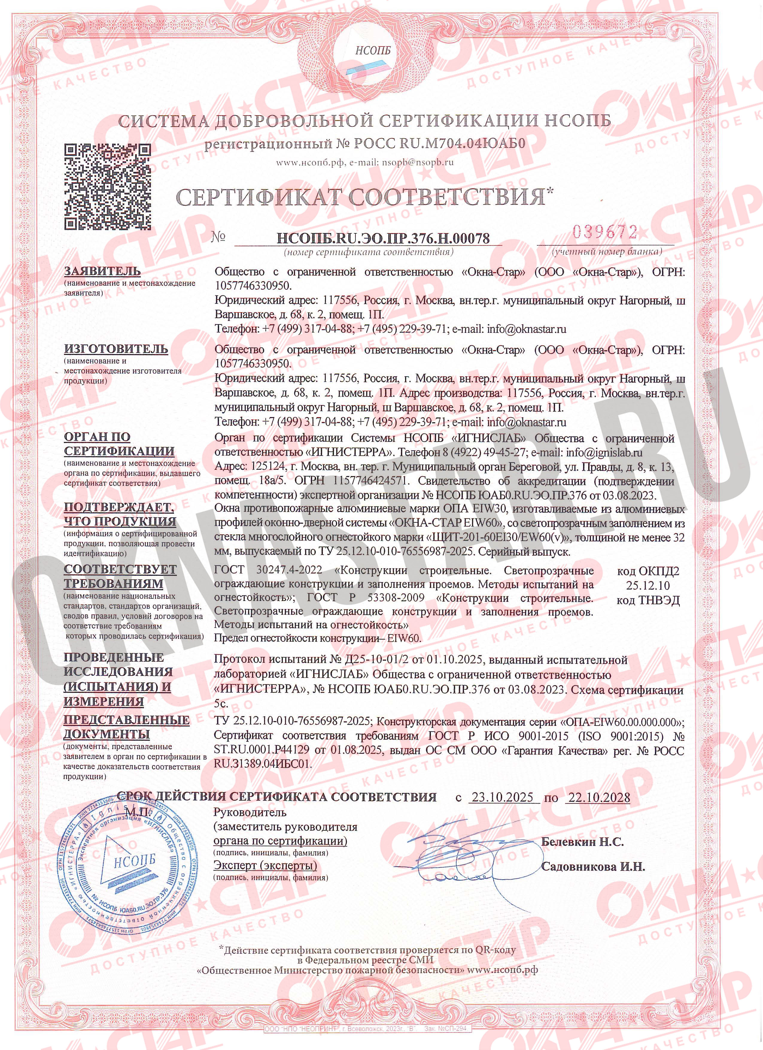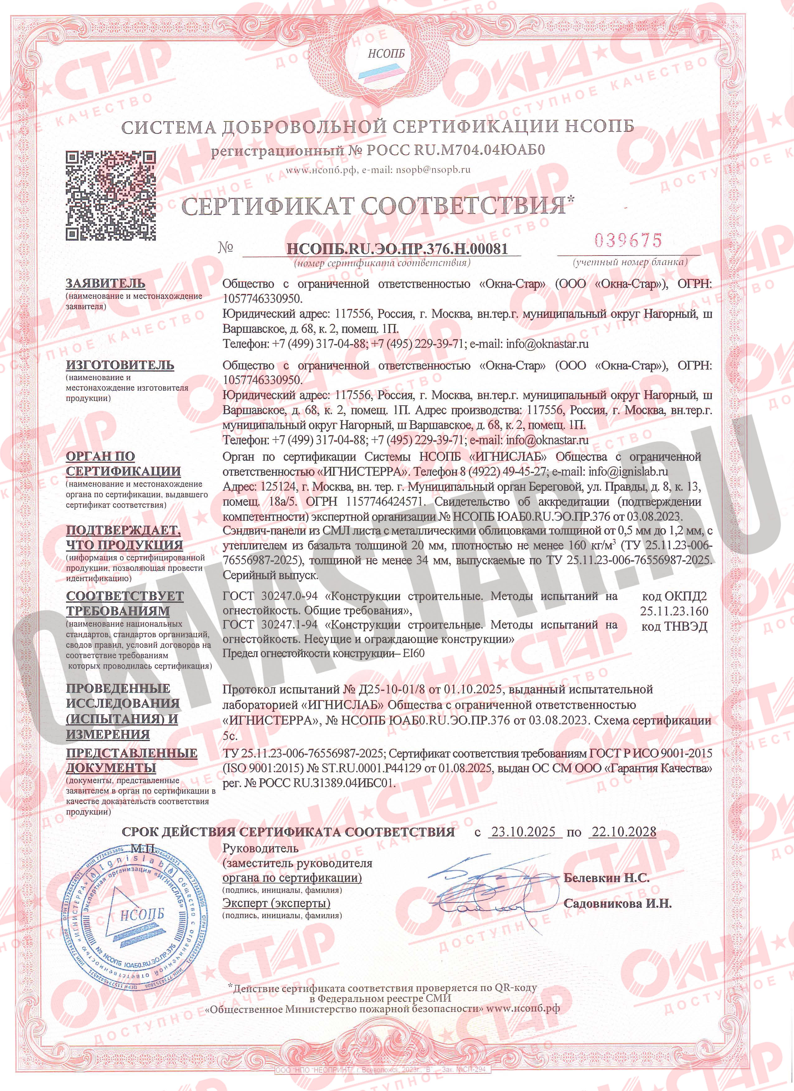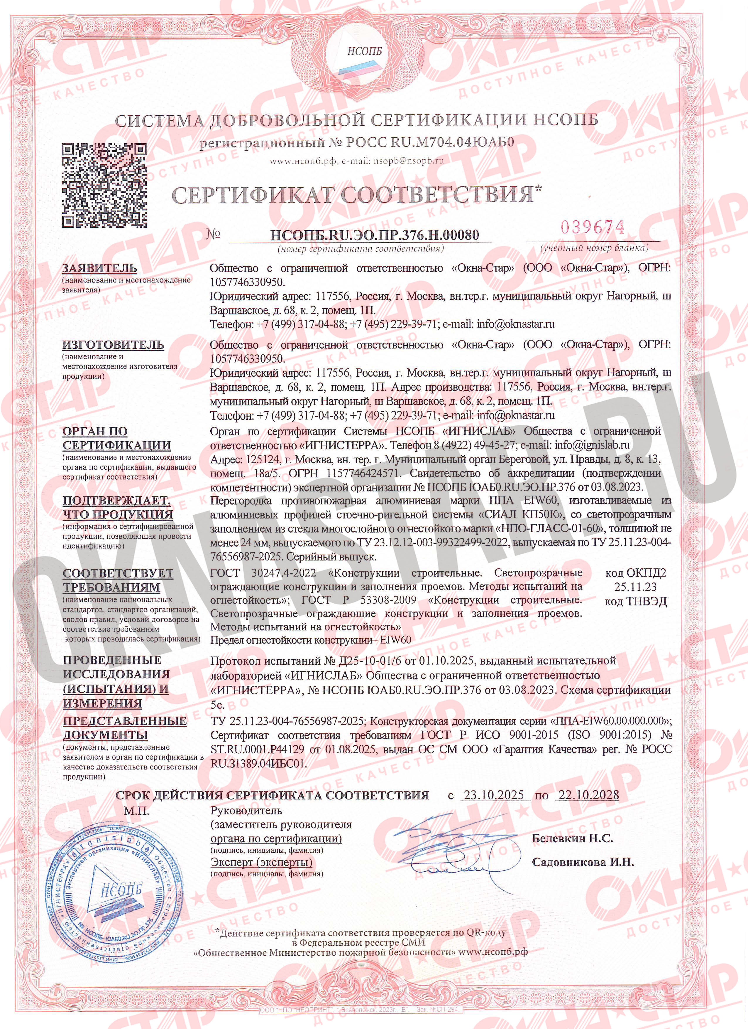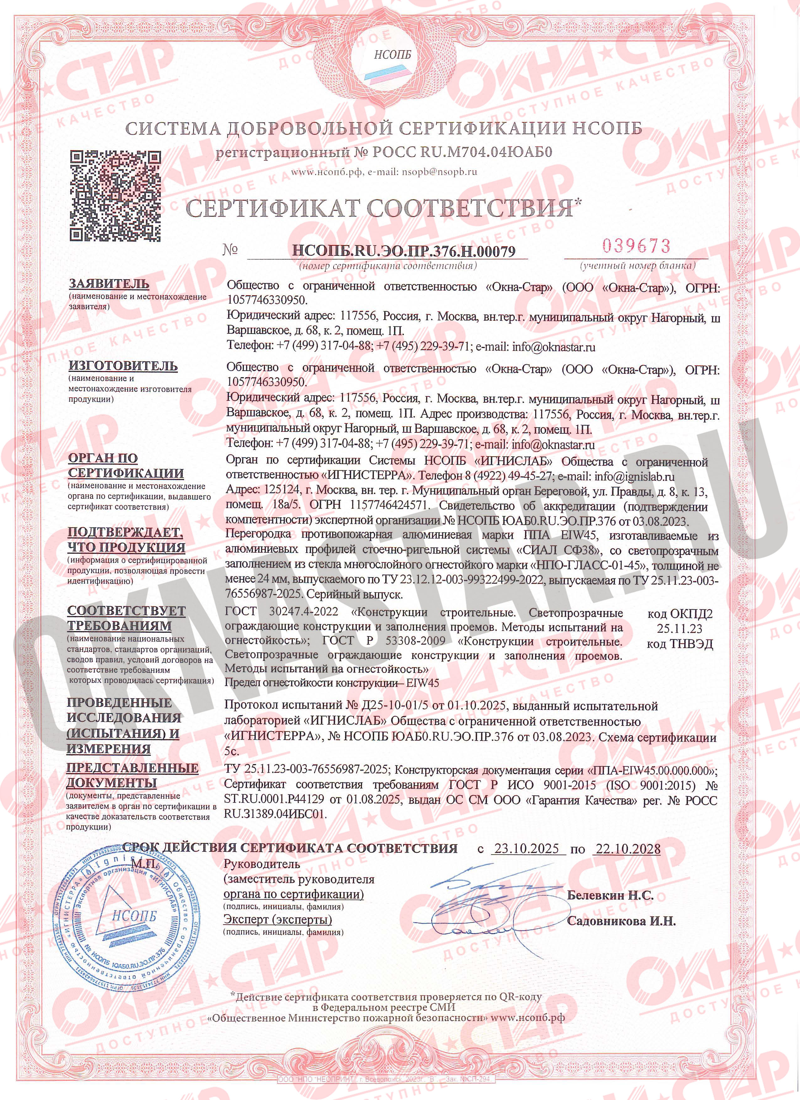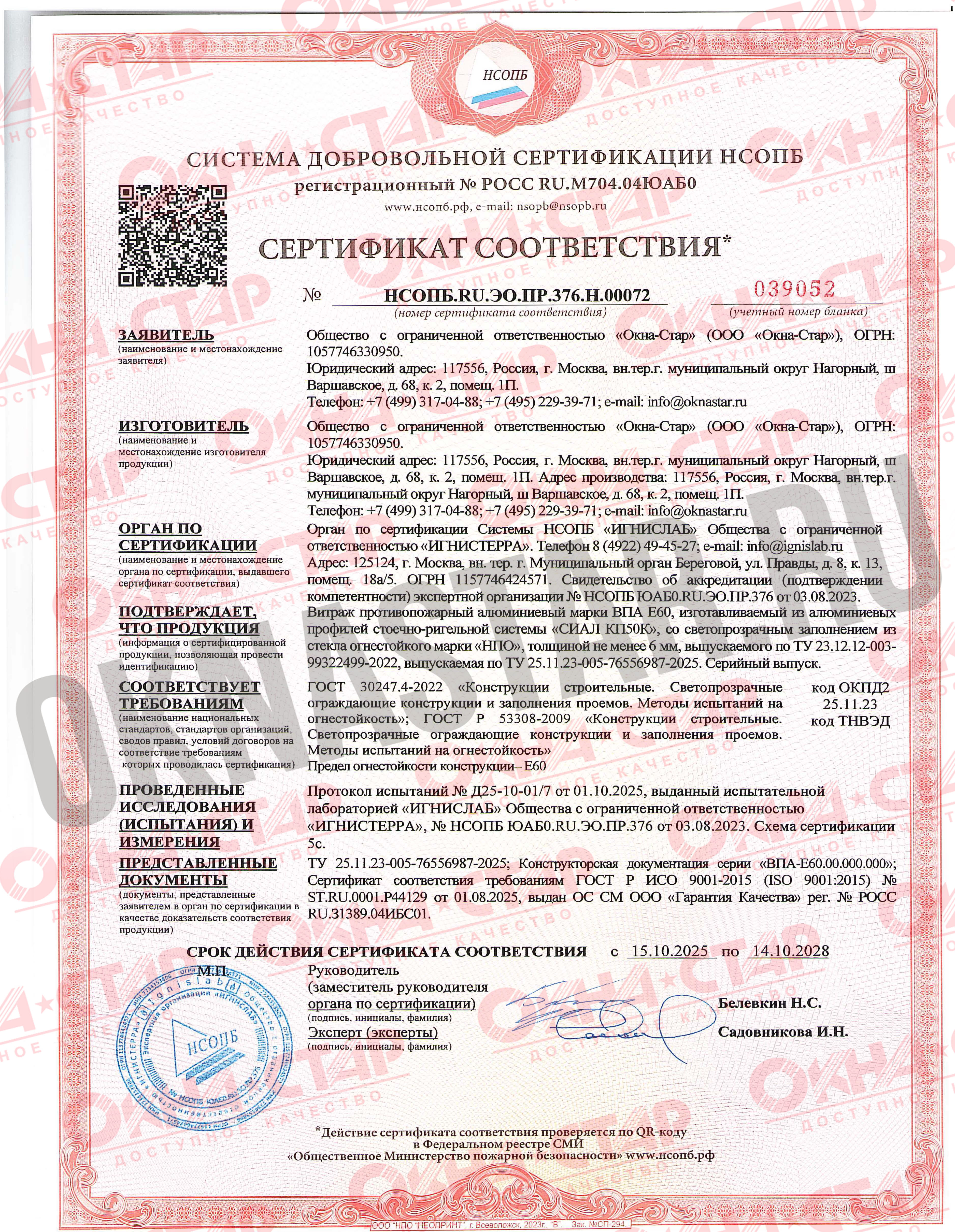 • Без этих сертификатов запрещено производить и устанавливать противопожарные конструкции