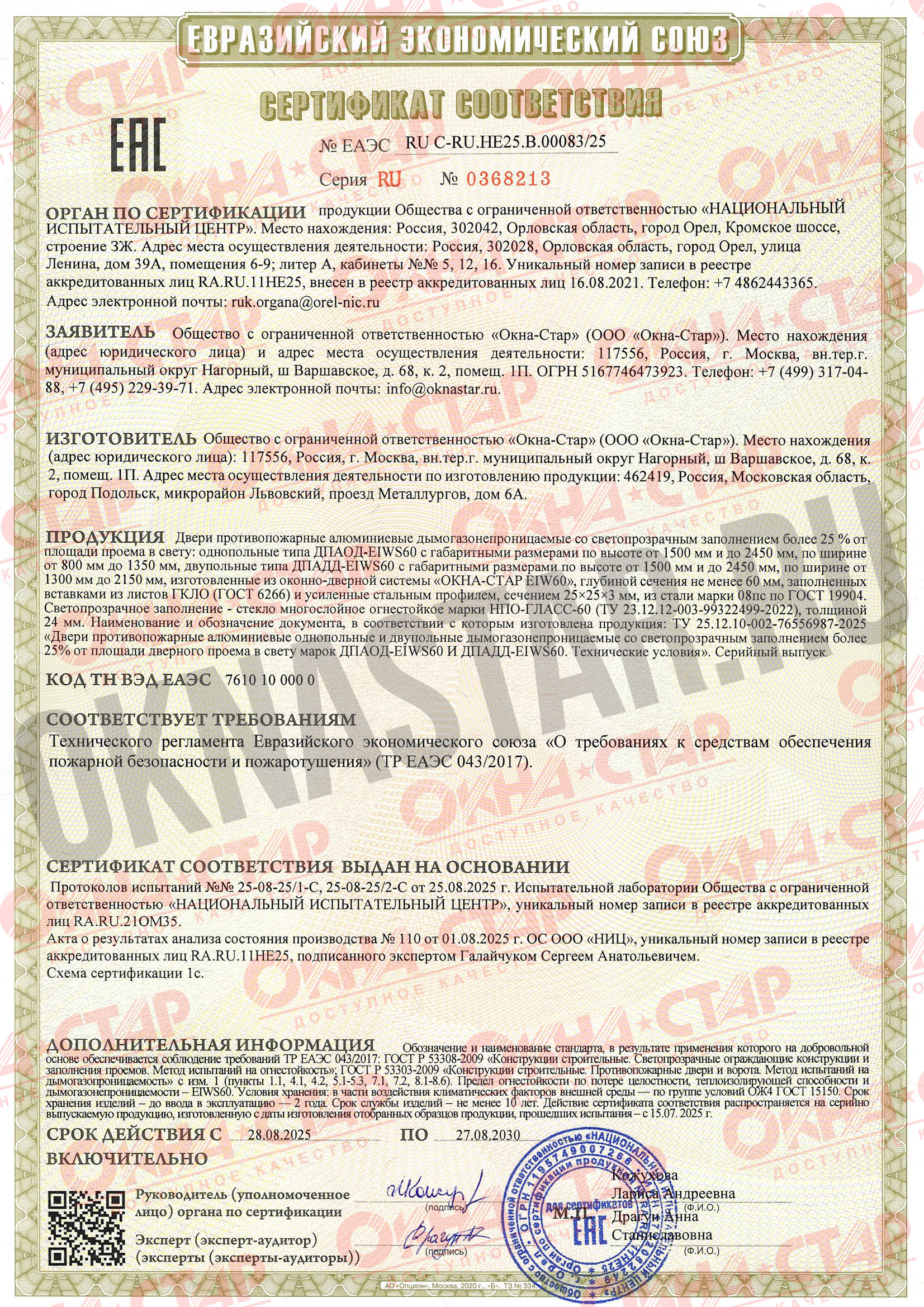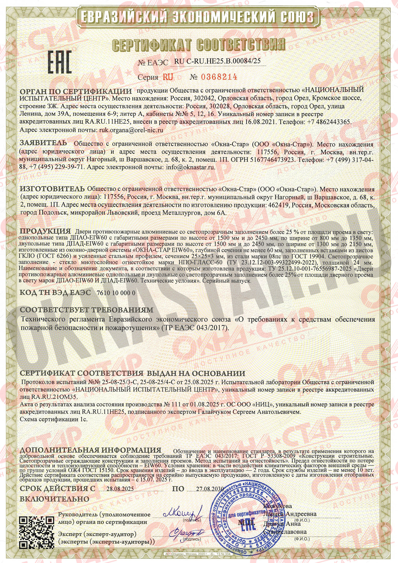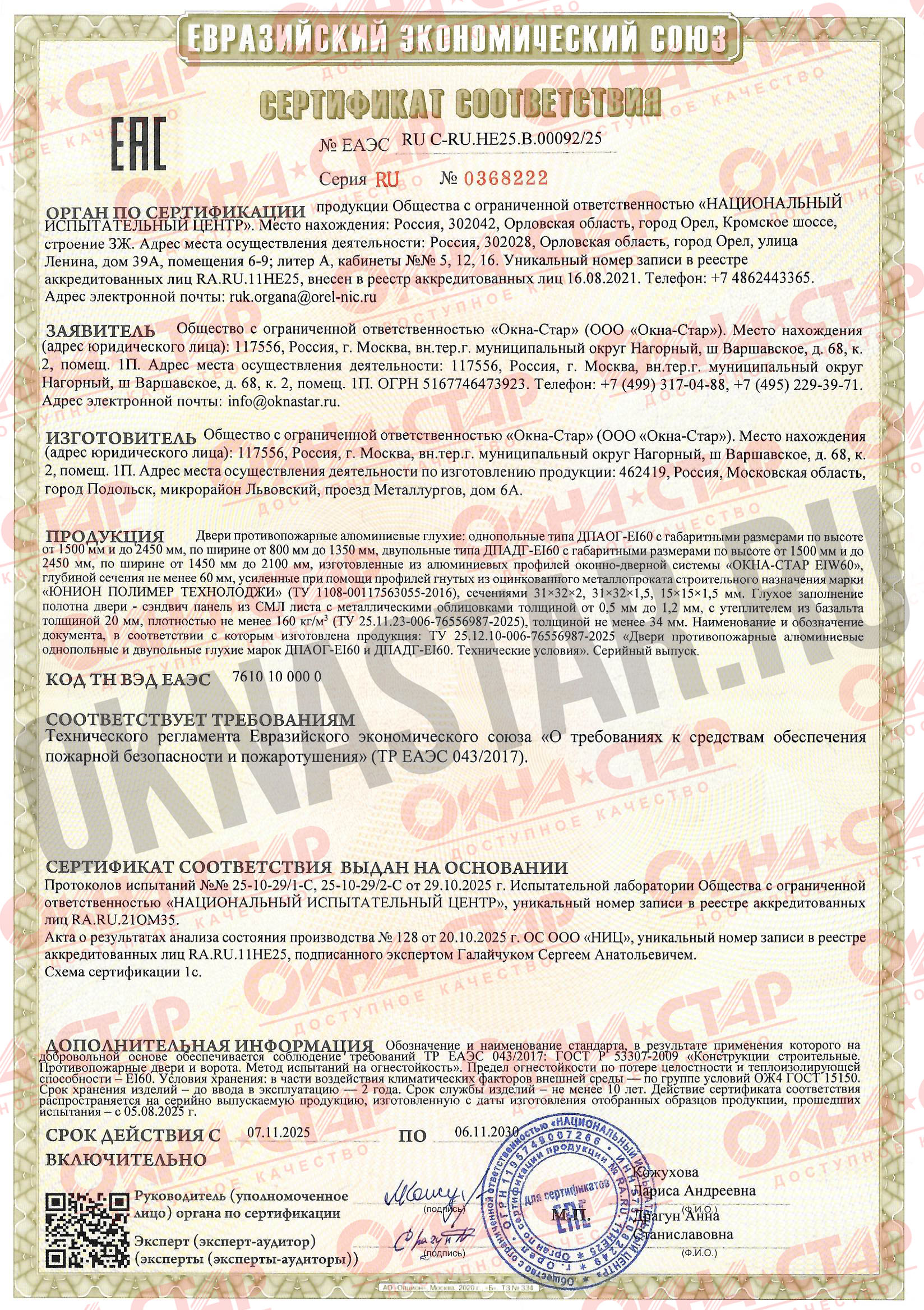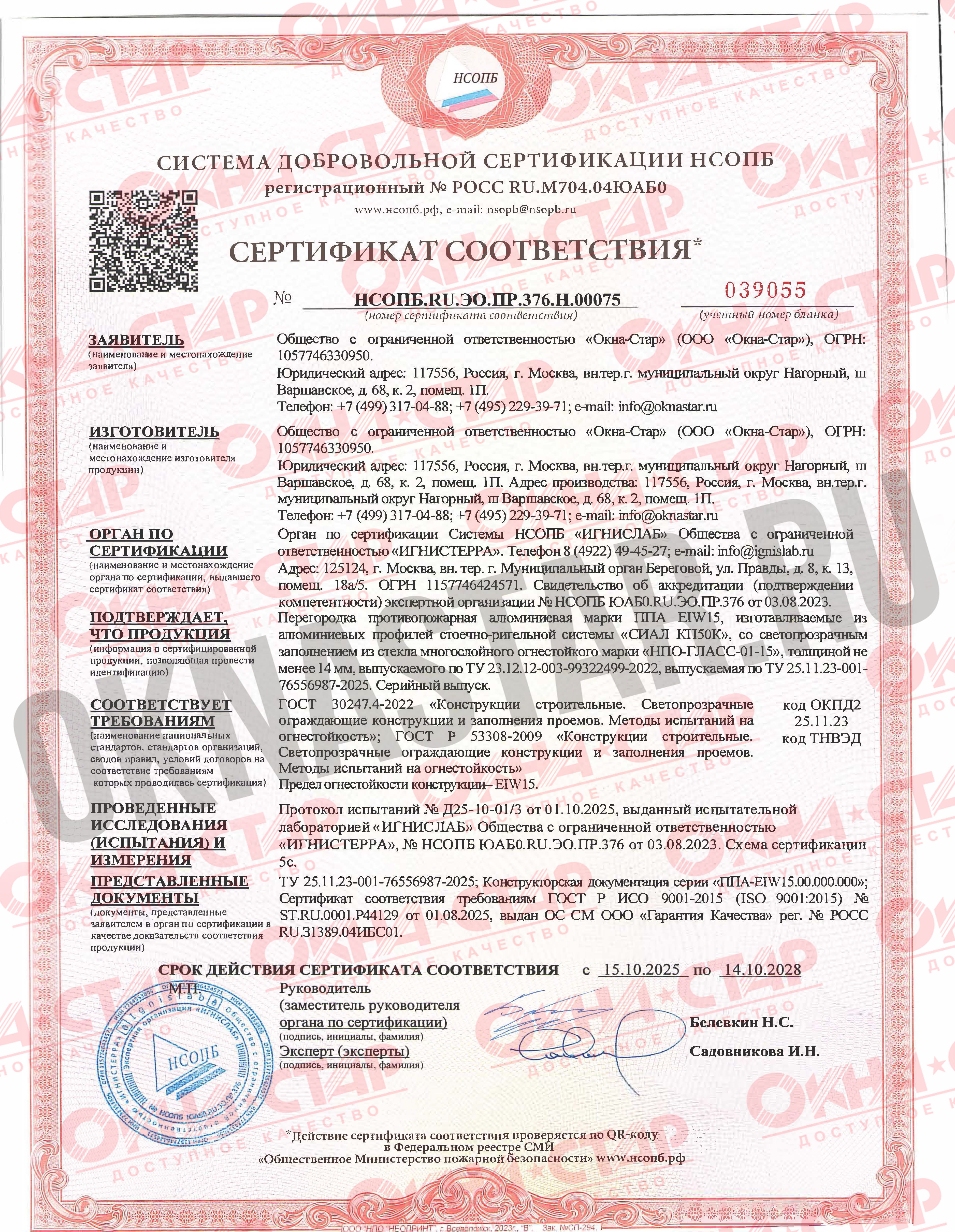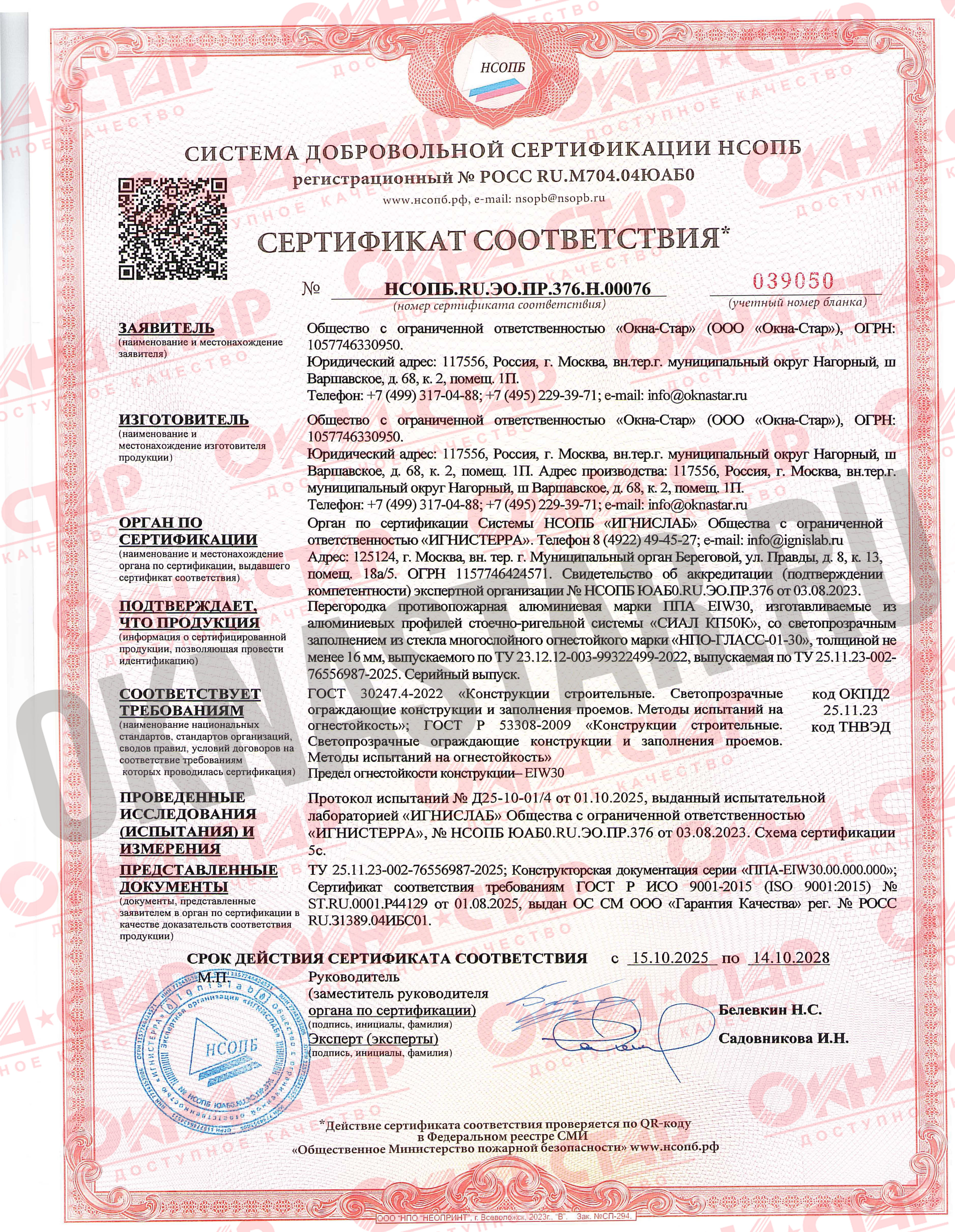 • Без этих сертификатов запрещено производить и устанавливать противопожарные конструкции