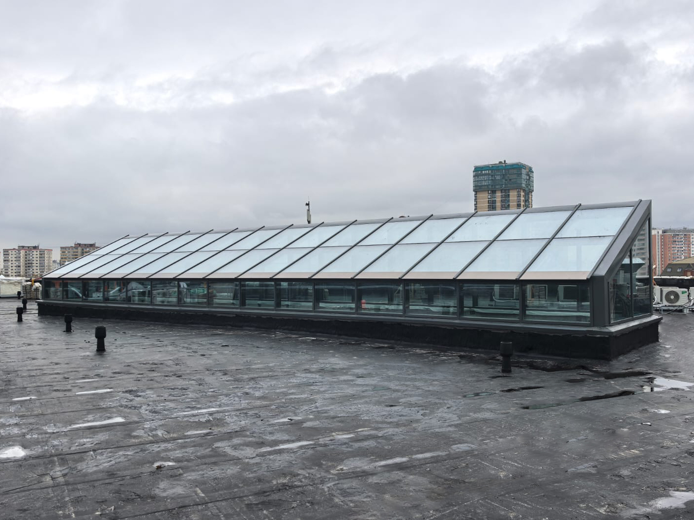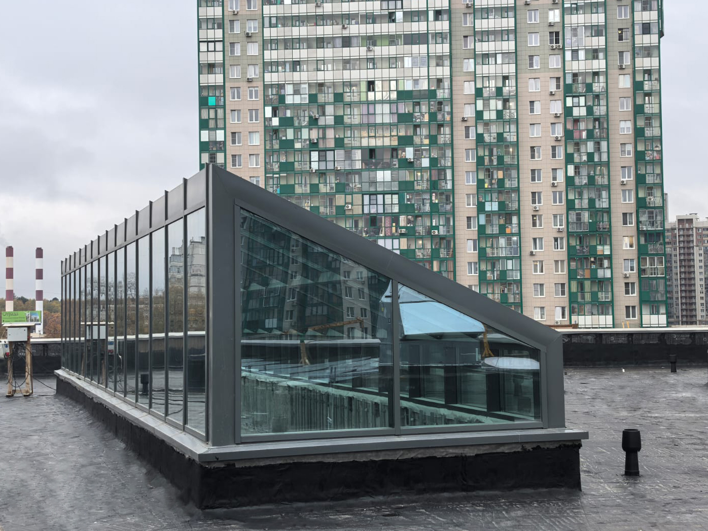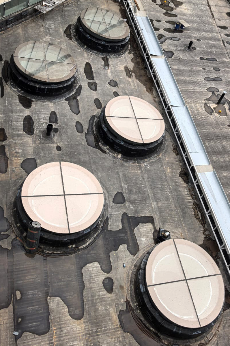 На крыше выполнено внешнее остекление: