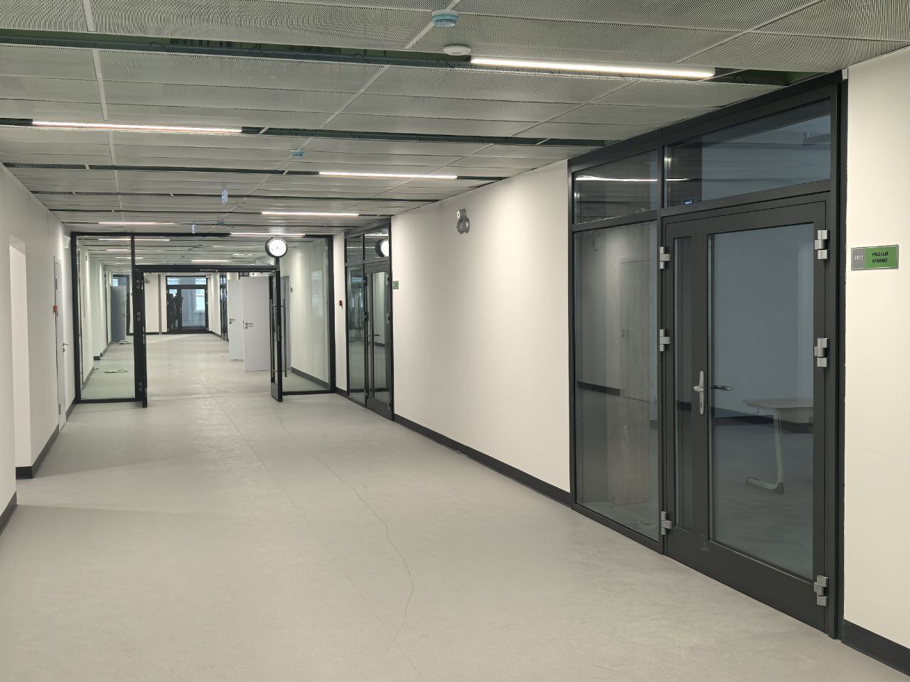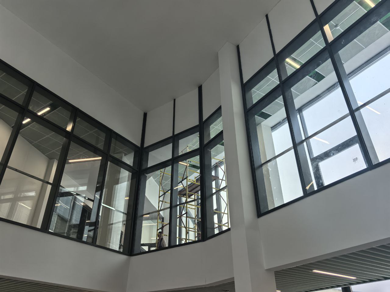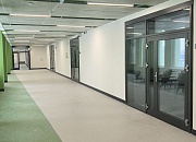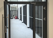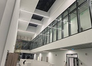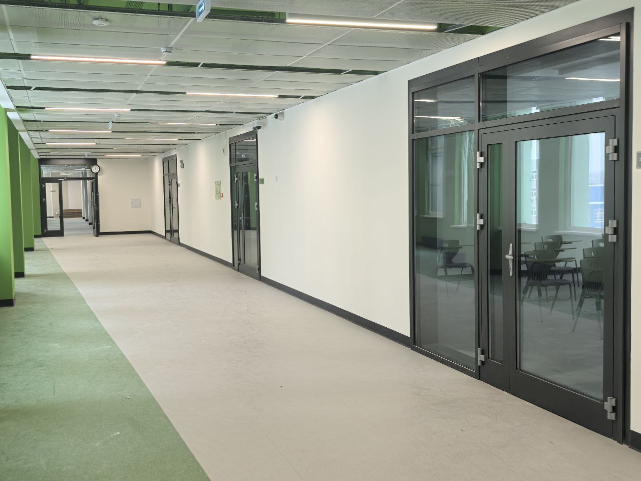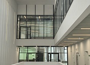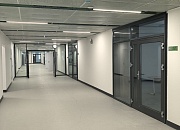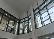 Установлены алюминиевые перегородки на 3-х этажах и в цоколе общей площадью 1200 м². Смонтированы внутренние противопожарные окна для безопасности учащихся.