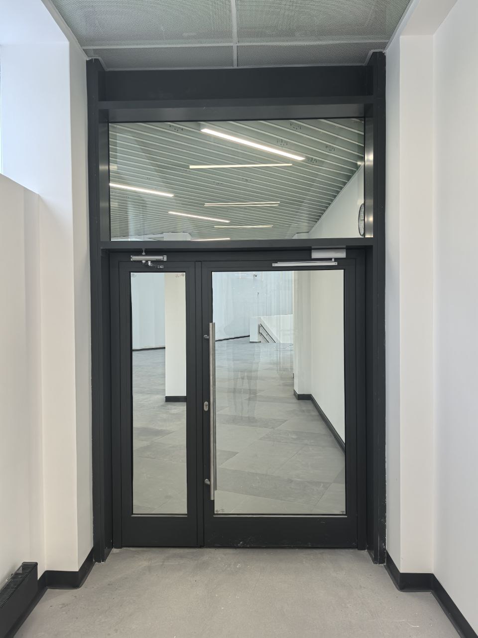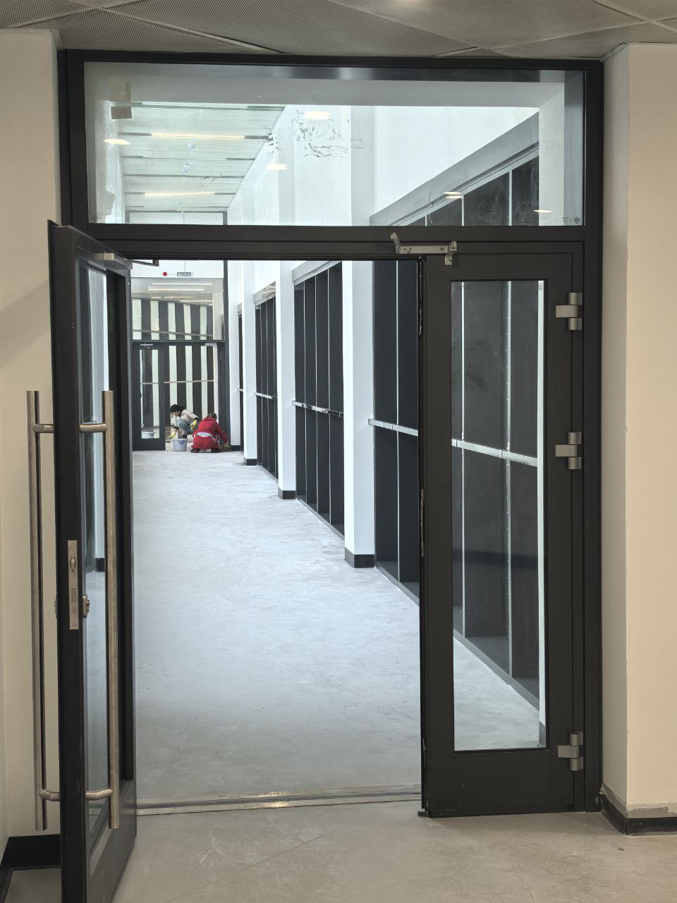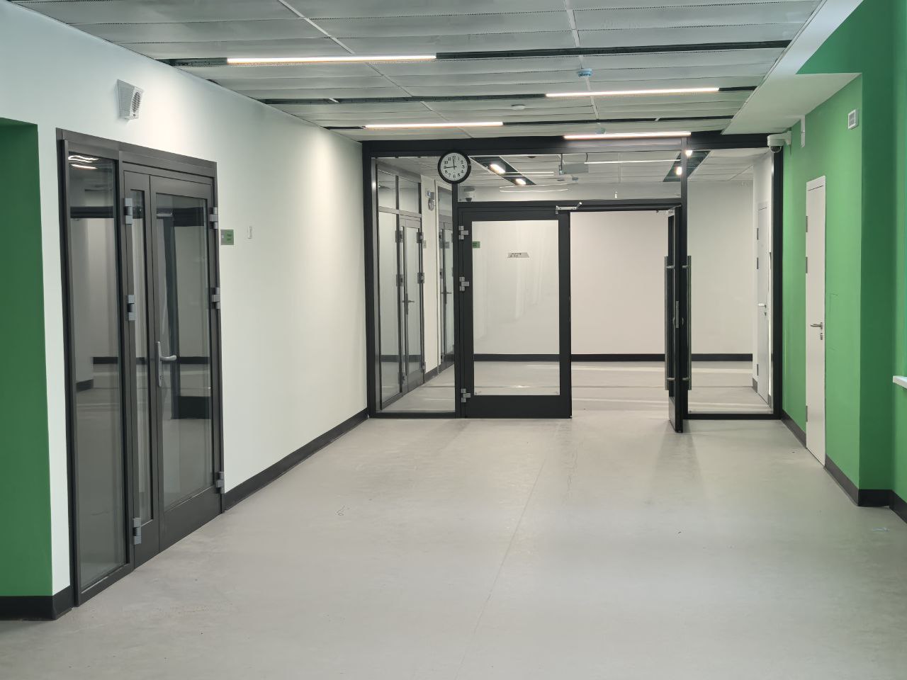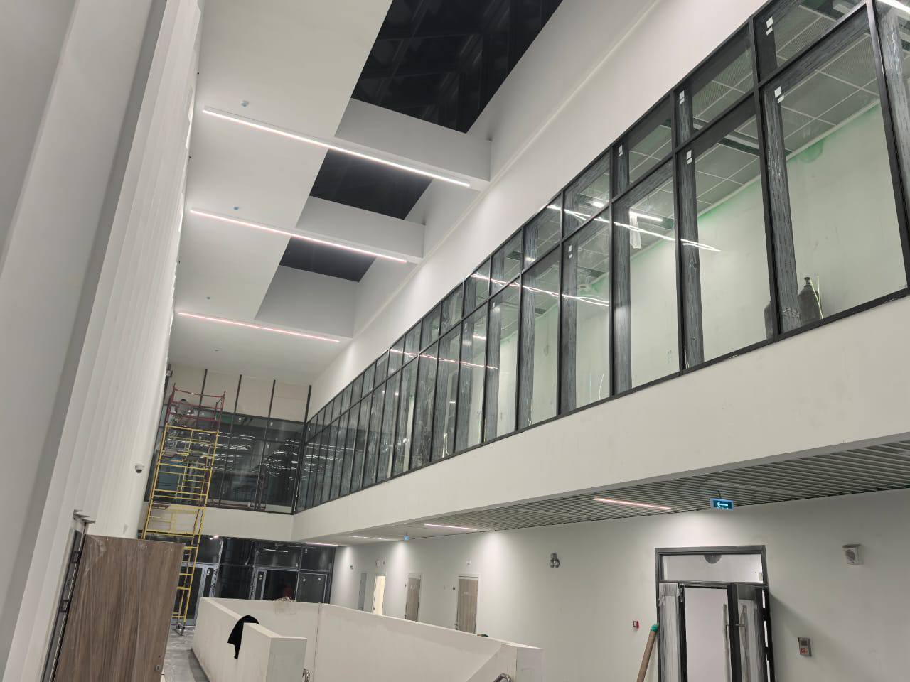Установлены алюминиевые перегородки на 3-х этажах и в цоколе общей площадью 1200 м². Смонтированы внутренние противопожарные окна для безопасности учащихся.