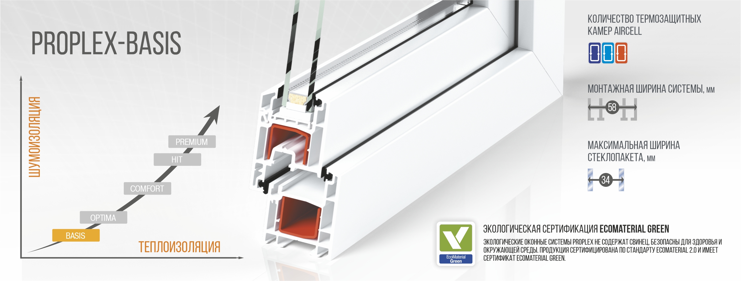 Компания PROPLEX выпускает одинаковые армирующие вставки и уплотнители, подходящие для всех моделей. Поэтому недорогой Basis демонстрирует высокую конструкционную жесткость и герметичность, сравнимую с характеристиками PREMIUM-модели.