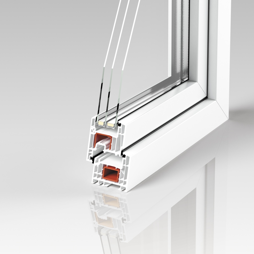 Теплостойкость конструкции обеспечивается 5-камерной схемой, а за общую жесткость отвечает армирующая вставка по периметру. При этом реальная теплостойкость после монтажа армирующего сердечника снижается до 0,8 м²*°С/Вт, что достаточно для сопротивления 40-градусным морозам.