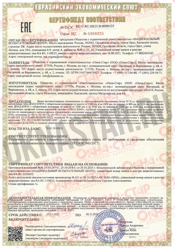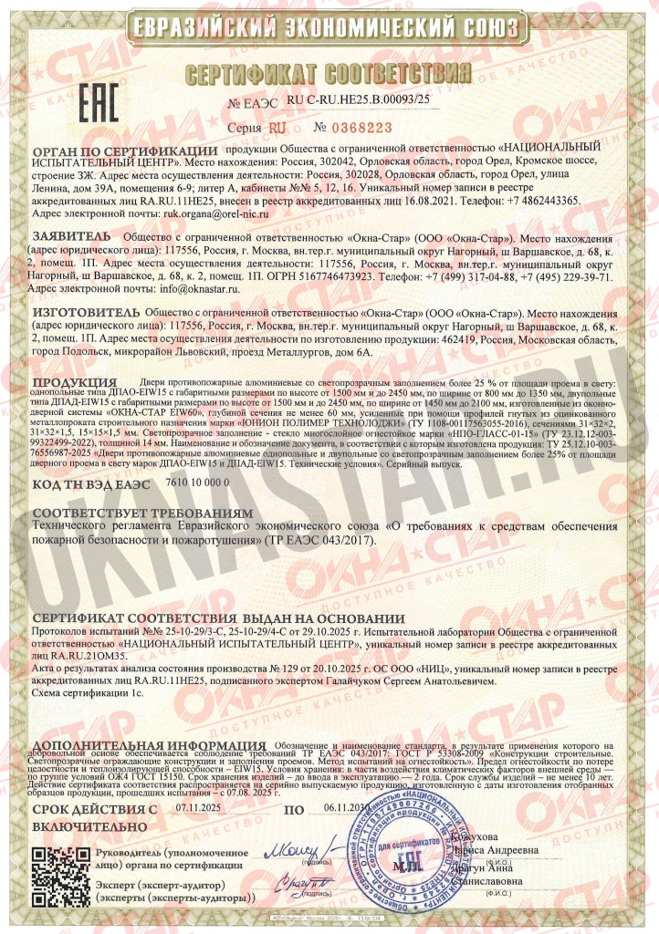 Компания «Окна-Стар» - сертифицированный производитель противопожарных дверей из алюминия. У нас можно заказать изготовление и монтаж конструкций с огнестойкостью до 60 минут.