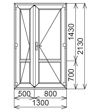 Входная штульповая пластиковая дверь 1300х2130 мм