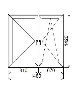 Пластиковое окно 2-створчатое 1480х1420 мм