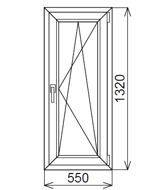 Одностворчатое окно. Створка поворотно-откидная. Петли справа, ручка слева, открывание правой рукой на себя.