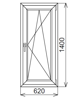 Одностворчатое окно. Створка поворотно-откидная. Петли справа, ручка слева, открывание правой рукой на себя.