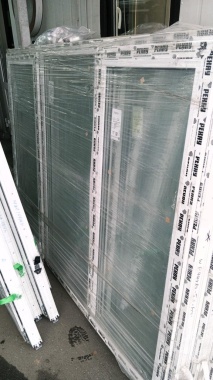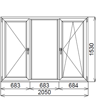 Трехстворчатое ПВХ окно белого цвета. Левая створка поворотная, правая створка поворотно-откидная, центральная - глухая. Двухкамерный стеклопакет 40 мм. Профиль Rehau Delight 70 мм.